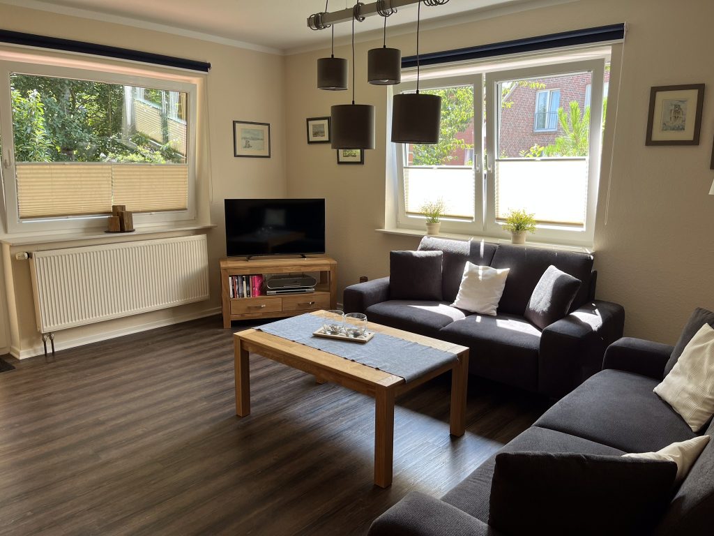 Im Wohnzimmer ist ein Flachbildschirm-TV, Radio- /CD und DVD Player. Eine gemütliche Sitzgruppe lädt zum Verweilen ein.
